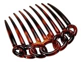 The France Luxe Chain Link Comb has 9 thick teeth rounded on the outside and flat inside. Fits smoothly against your hair. Circular chain link pattern creates a soft feminine look. Graduated teeth provides a strong holding comb for most hair types.