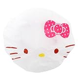 Save your hairdo with this cute Hello kitty shower cap with applique polka dot bow and dark pink ruffled satin trim.